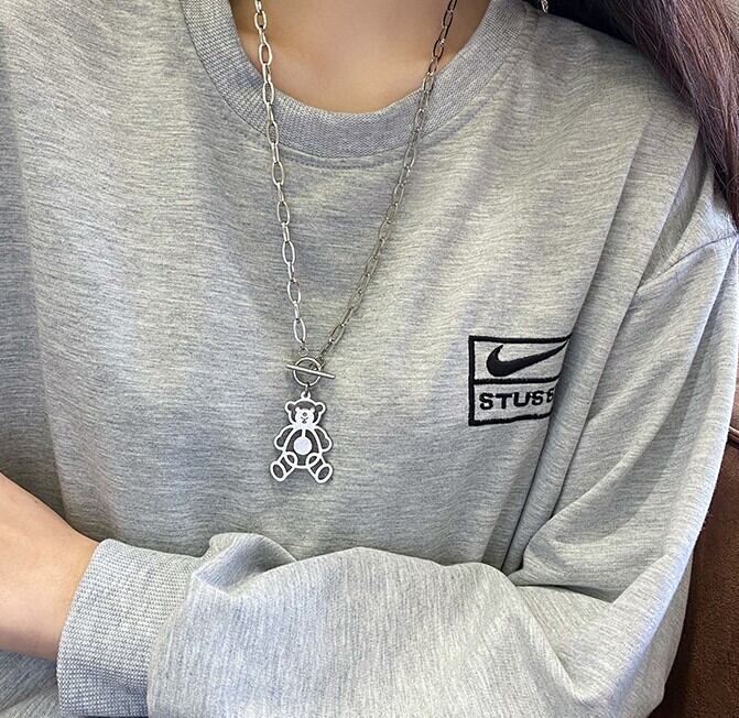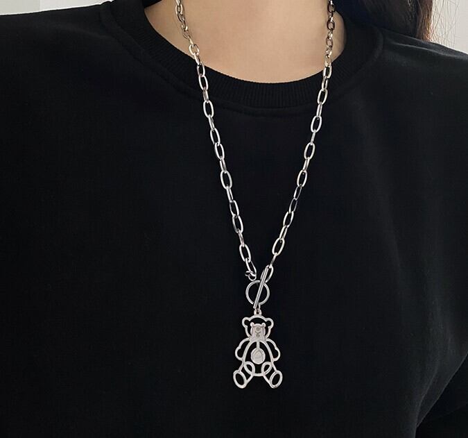 ベアー ロング チェーン ネックレス シンプル カジュアル おしゃれ かっこいい 大人可愛い 個性的 クール 10代 20代 30代 40代 デート お出かけ 休日 デイリー 普段使い 韓国系 ファッション スタイル プレゼント ギフト 春 夏 秋 冬 シルバー