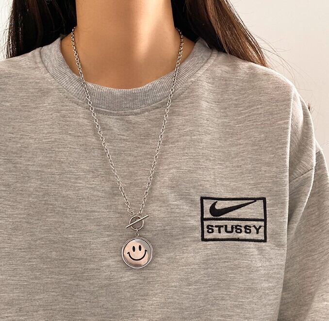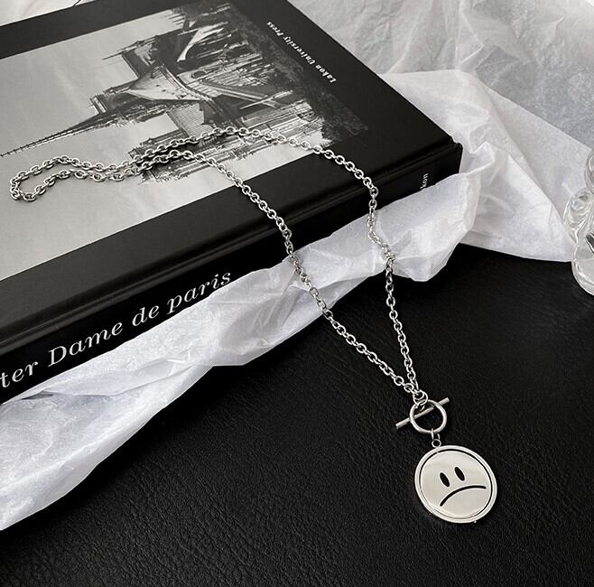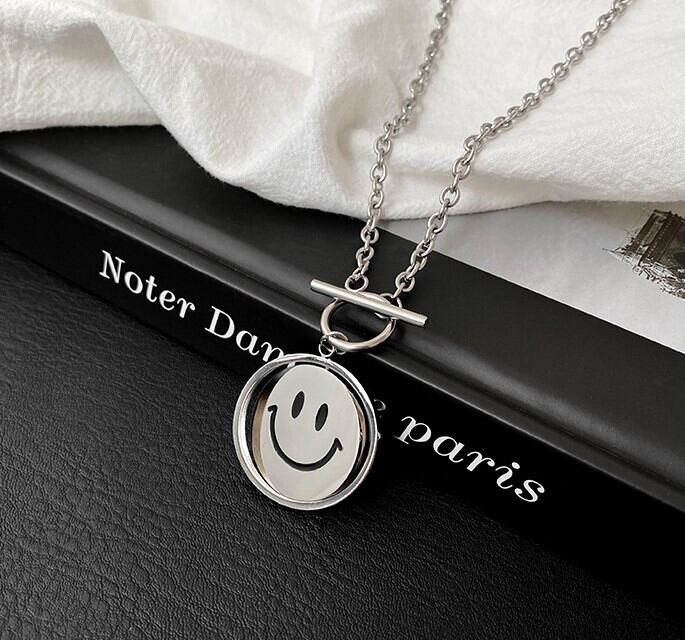 フェイス スマイリー ネックレス シンプル カジュアル おしゃれ レトロ レディース お出かけ お泊まり 休日 アウトドア イベント 旅行 普段使い 韓国 ファッション コーデ スタイル プレゼント ギフト オールシーズン 誕生日 2021 シルバー