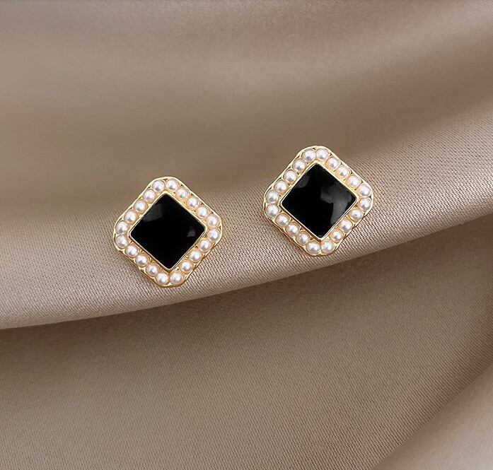 ブラック ブロック ピアス きれいめ シンプル 大人 上品 おしゃれ お洒落 レディース オフィス OL 通勤 デート お出かけ 女子会 お泊まり 休日 イベント 旅行 普段使い ファッション スタイル 高見え オールシーズン 誕生日 結婚式 二次会 披露宴 ゴールド