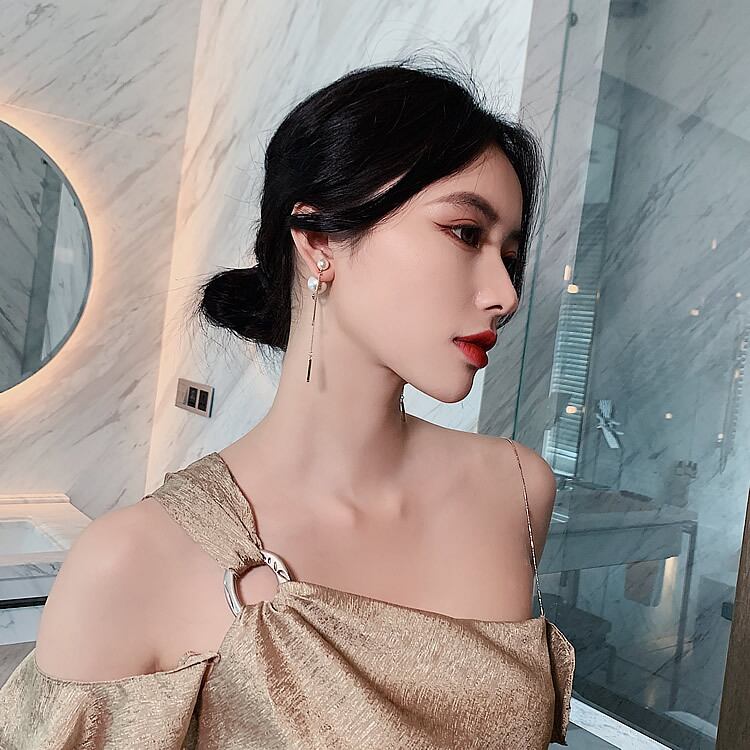 ロングパール イヤリング きれいめ 大人 上品 おしゃれ お洒落 エキゾチック レディース デート お出かけ 女子会 お泊まり 休日 イベント 旅行 普段使い 韓国系 ファッション スタイル モテ トレンド オールシーズン