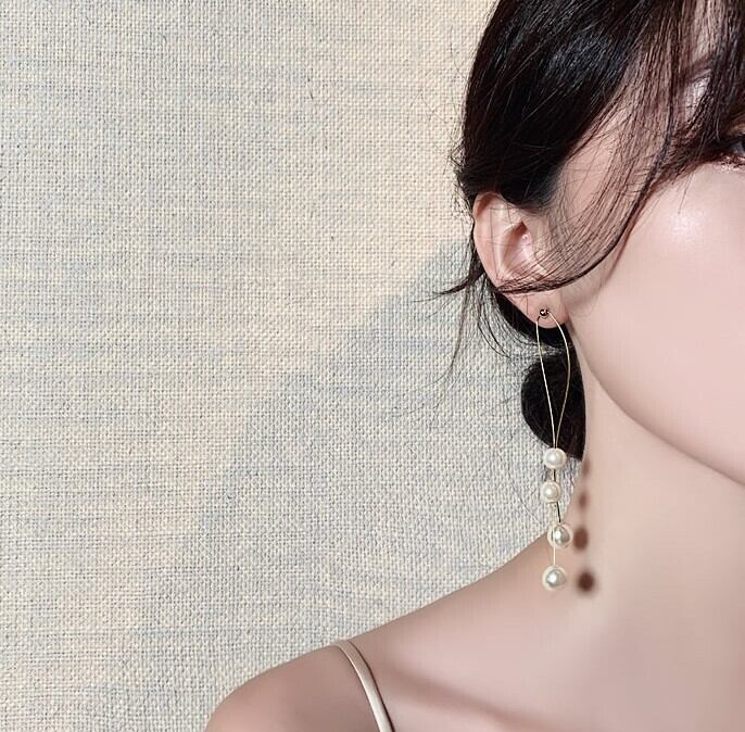 ニードルパール ロング ピアス シンプル 大人 上品 おしゃれ お洒落 エキゾチック レディース デート お出かけ 女子会 お泊まり 休日 イベント 旅行 普段使い 韓国系 ファッション スタイル モテ トレンド オールシーズン