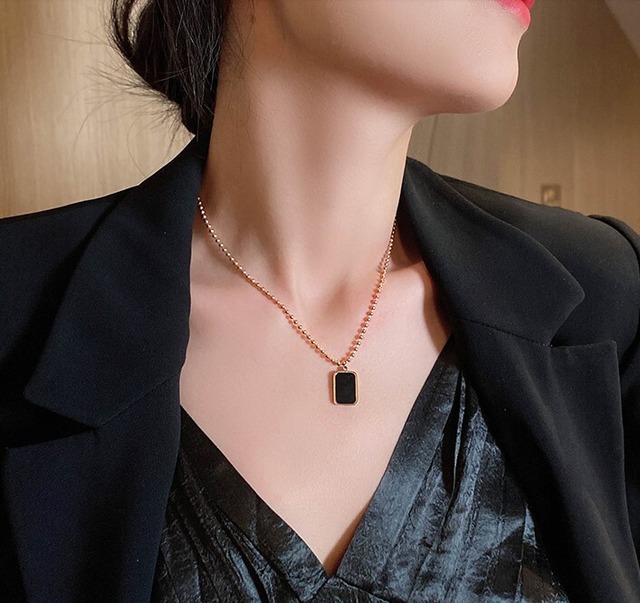 ブラック スクエア チタン ネックレス シンプル カジュアル 大人 上品 おしゃれ お洒落 かっこいい エキゾチック お出かけ お泊まり 休日 イベント リゾート 旅行 韓国系 ファッション スタイル 春 夏 秋 冬 オールシーズン ゴールド