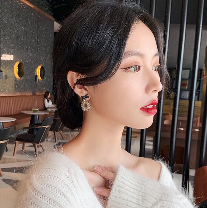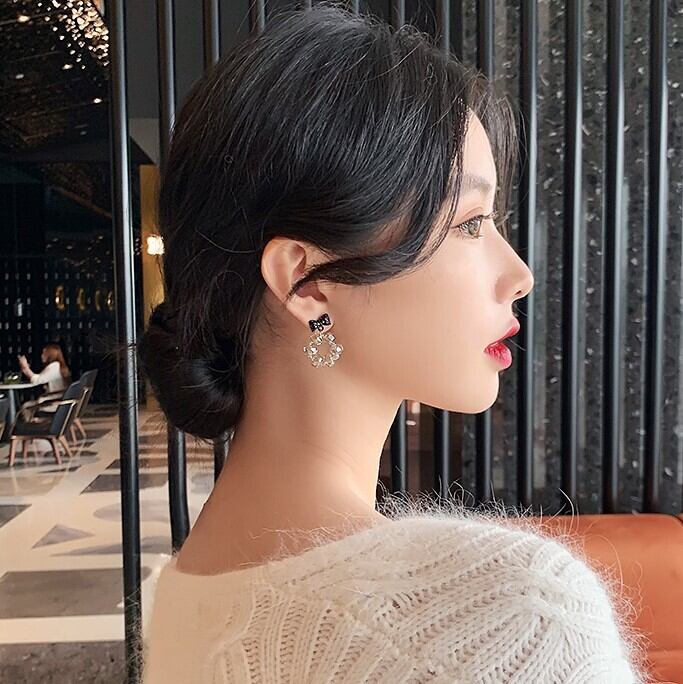 ブラック バタフライ クリスタル イヤリング 2021 新しい潮純銀針韓国気質耳釘付け女性秋冬耳飾り