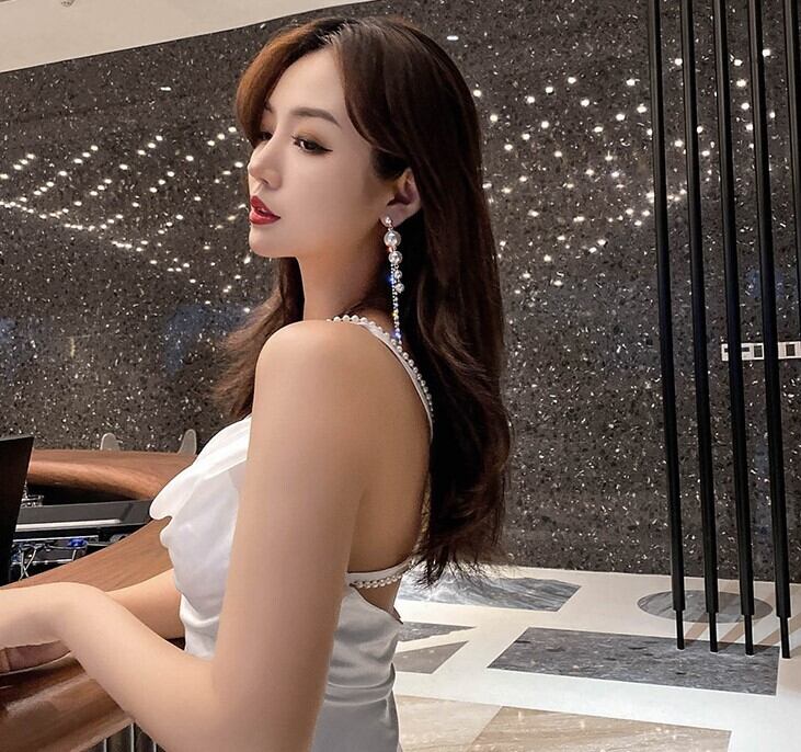 パールルースイヤリングロングイヤピンパーパーパードレス2021新しい潮女秋小群衆気質メッシュレッドイヤーアクセサリー