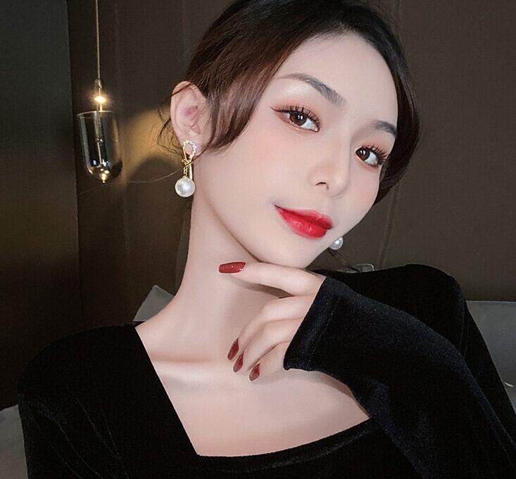 高級感レトロパールイヤリングレディースショートスタイルスレンチイヤーペンダント韓国非対称結び目イヤレディースイヤトリム