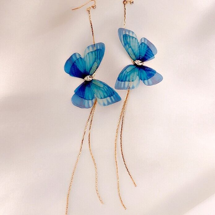 超仙小群蝶耳飾り長い流蘇イヤリング韓国気質女神ファンネット赤耳装飾個性的なデザイン感