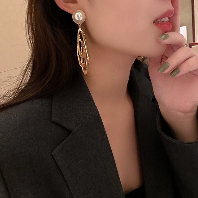 レトロなメタルパールイヤリング、気質、ハイエンドな雰囲気のイヤリング、パーソナライズされたデザインセンス、2021年の新しい流行のイヤリング女性