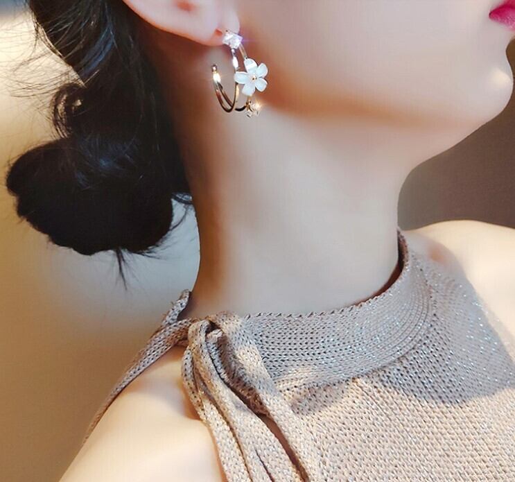 S925シルバーニードル韓国東大門フェアリーラインストーンシンプルな雰囲気のフラワースタッドピアスファッションエレガントなサークルピアス女性