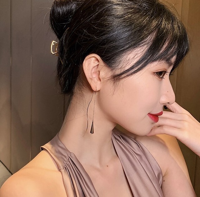 ロングイヤー ドロップ スタッドピアス 大人 上品 おしゃれ お洒落 かっこいい エキゾチック モード系 セクシー エレガント 20代 30代 40代 50代 レディース お出かけ 休日 パーティー イベント 旅行 韓国 ファッション スタイル 高見え 格上げ トレンド オールシーズン 二次会 披露宴 ゴールド