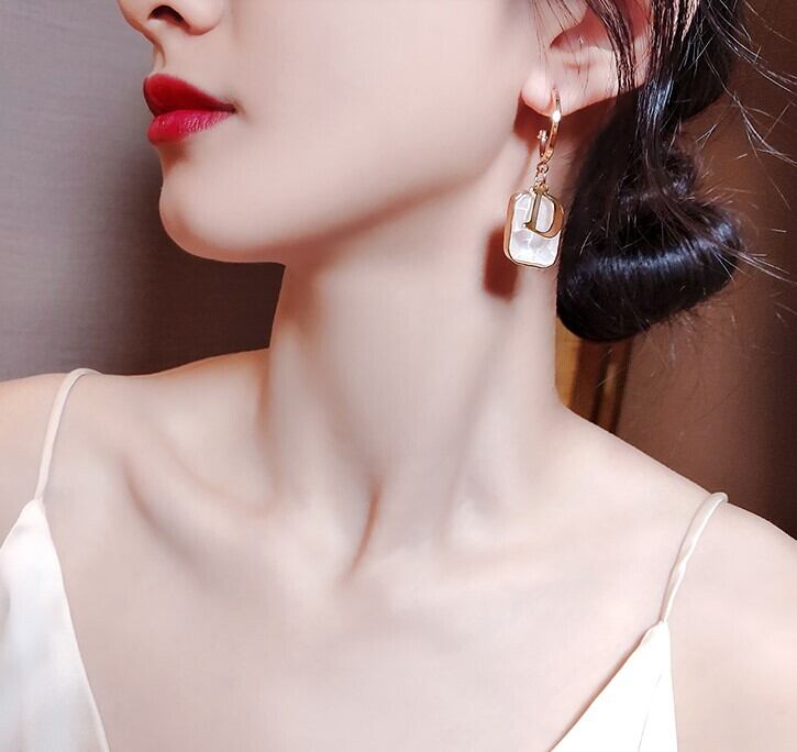 シルバーニードルシェルイヤリング女性文字Dロングイヤリング誇張された韓国の気質パーソナリティイヤリング