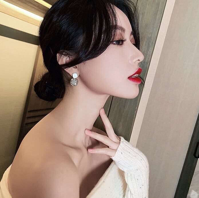 ホワイトイヤリングプレミアムセンスイヤホン2021新しい潮耳の秋の女性925スターリングシルバーピン気質耳飾り耳の秋