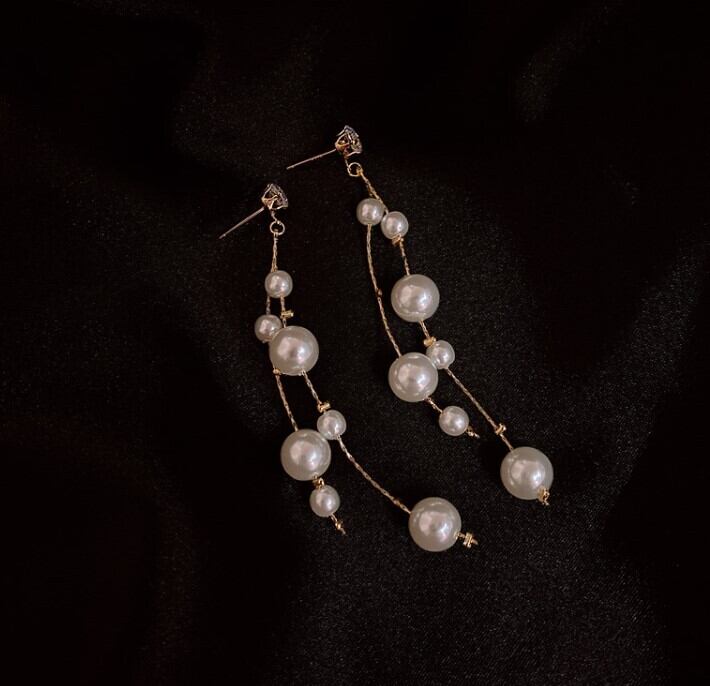 ロングパールピアス きれいめ シンプル 大人 上品 お洒落 かっこいい レディース デート お出かけ 女子会 お泊まり 休日 リゾート 旅行 韓国系 ファッション スタイル 高見え オールシーズン 謝恩会 結婚式 二次会 披露宴