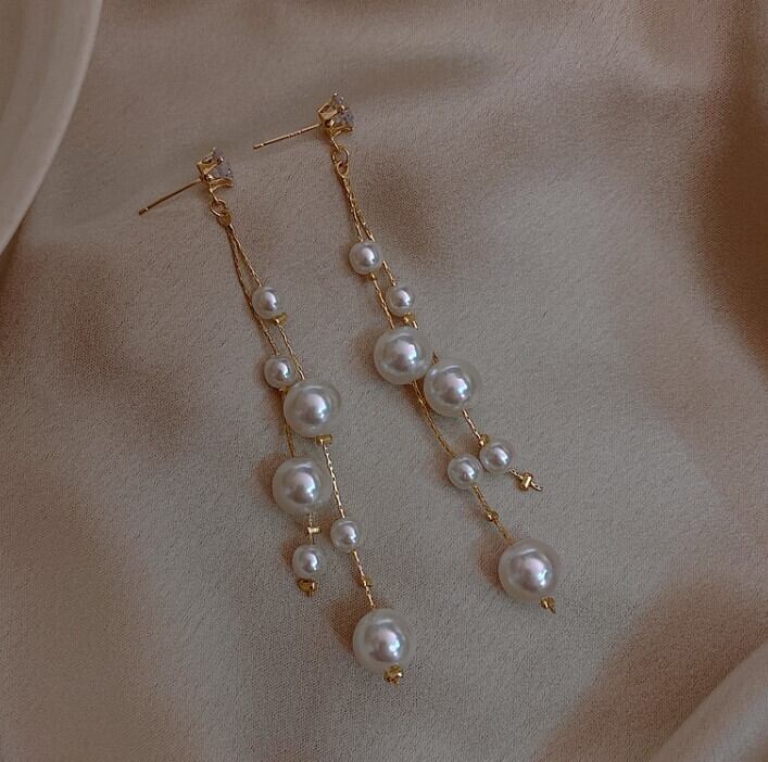 ハイセンスなロング気質イヤリングニードルパールピアス2021新しいトレンディな女性ネットレッドピアス