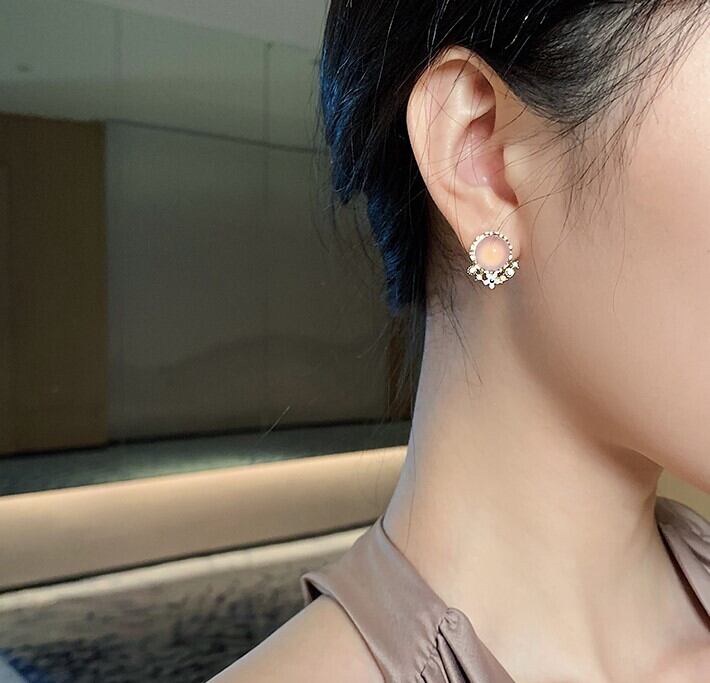 ピンクの猫の目のイヤリング女性の韓国のネット赤い気質の小さなイヤリング2021新しい流行のピアス