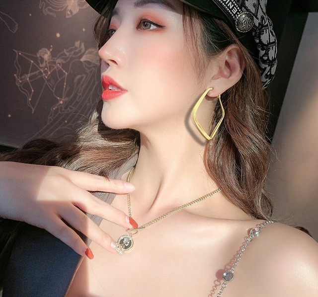 誇張された大きな中空の正方形の金属のイヤリングセクシーな個性の豪華な高級イヤリング韓国東大門イヤリング女性