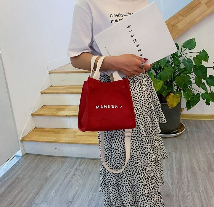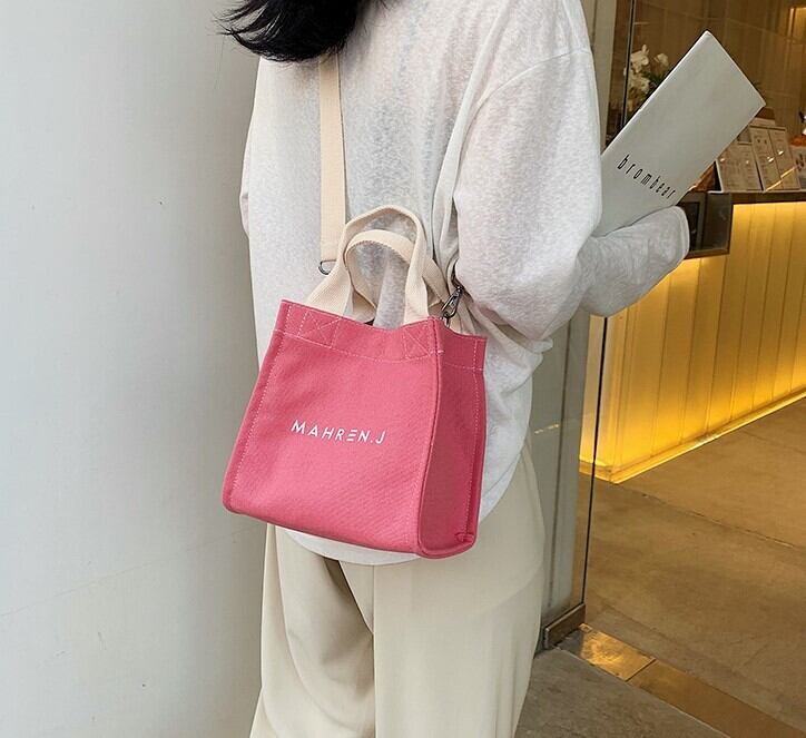 キャンバス トートバッグ 2way 四角 帆布 かわいい シンプル カジュアル 大人 アジアン レディース 学生 通学 休日 お買い物 普段使い ファッション スタイル オールシーズン 小さめ ホワイト 黒 レッド ピンク