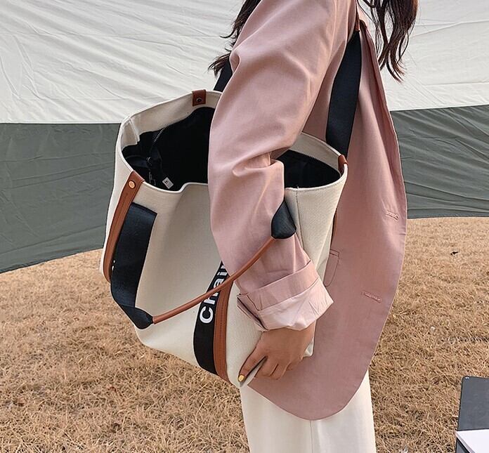 キャンバスバッグバッグ女性大容量2022新しいファッションネットレッド大学生クラスバッグ通勤ワンショルダートートバッグ