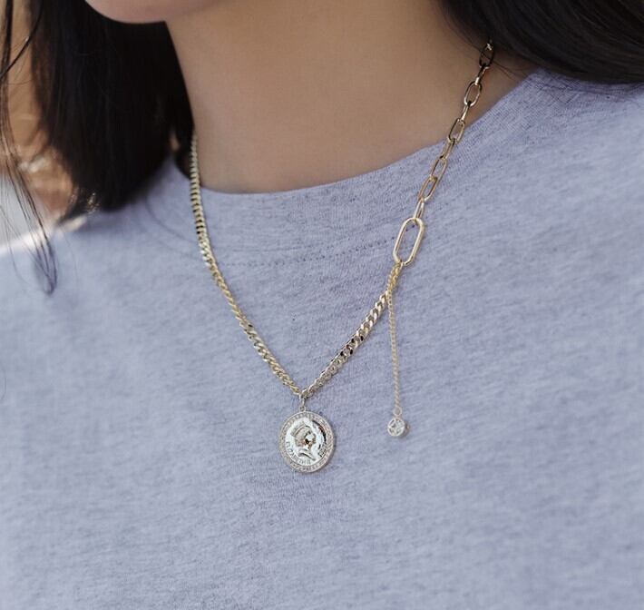 コイン チェーン ネックレス シンプル カジュアル 大人 おしゃれ かっこいい レディース デート お出かけ お泊まり 休日 旅行 お買い物 普段使い 韓国系 ファッション スタイル 格上げ オールシーズン ゴールド