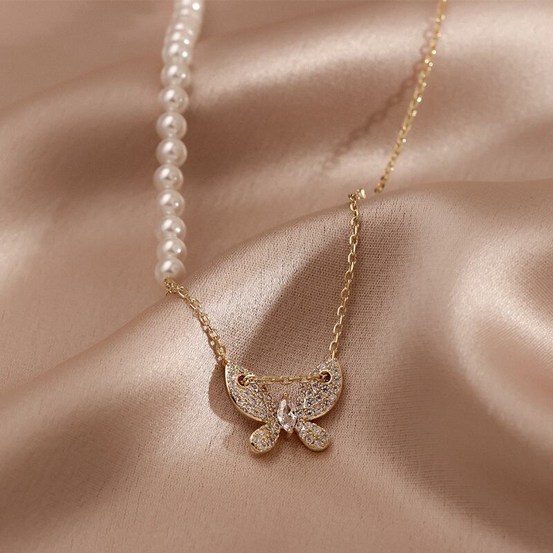 バタフライ パール 鎖骨 チェーン ネックレス 大人 上品 おしゃれ お洒落 エレガント レディース デート お出かけ お泊まり 休日 パーティー 普段使い ファッション スタイル 高見え 格上げ プレゼント 流行 オールシーズン 結婚式 披露宴 ゴールド