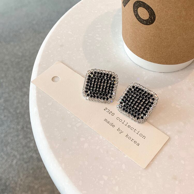 フルダイヤモンドライトラグジュアリースクエアイヤリング気質アドバンストアトモスフェリックピアスメスネットレッドインコールドウィンドイヤリングS925シルバーニード