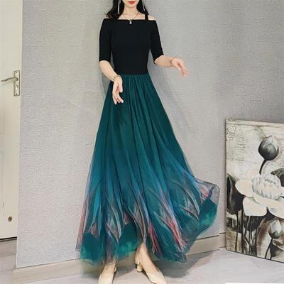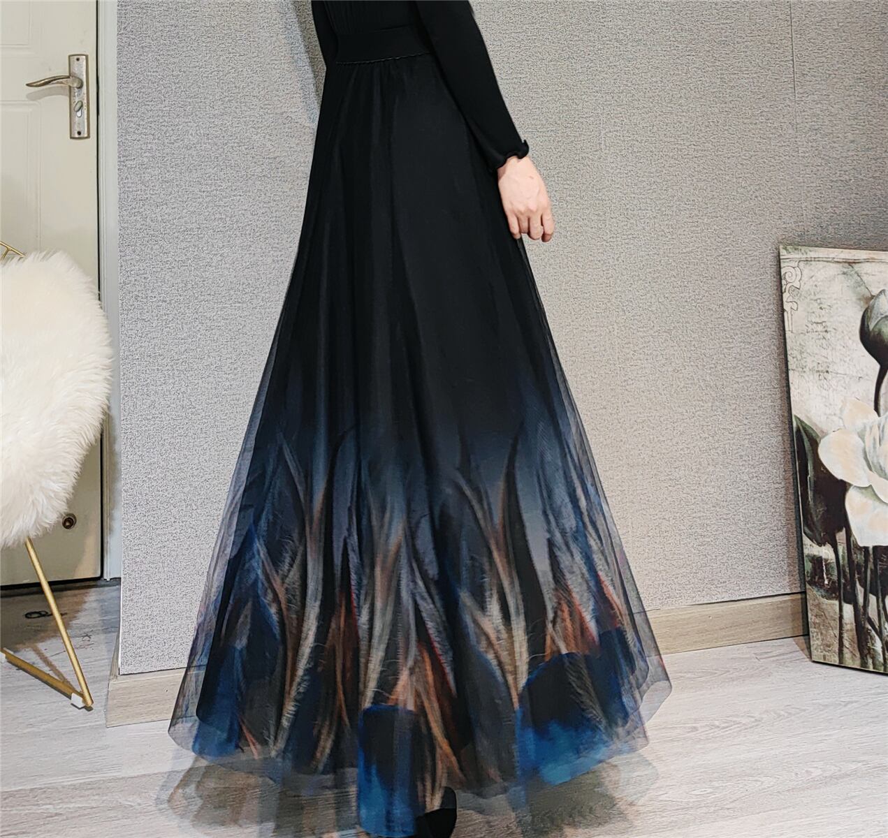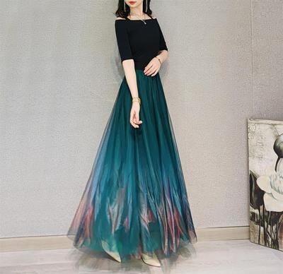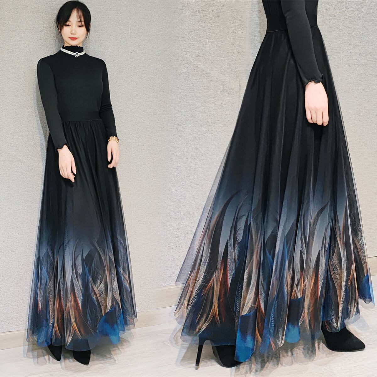 スカート ロングスカート レディースファッション グラデーション フェザー 春 夏 秋 冬 上品 大人 デート ブラック グリーン S M L XL 2XL 3XL 4XL 5XL