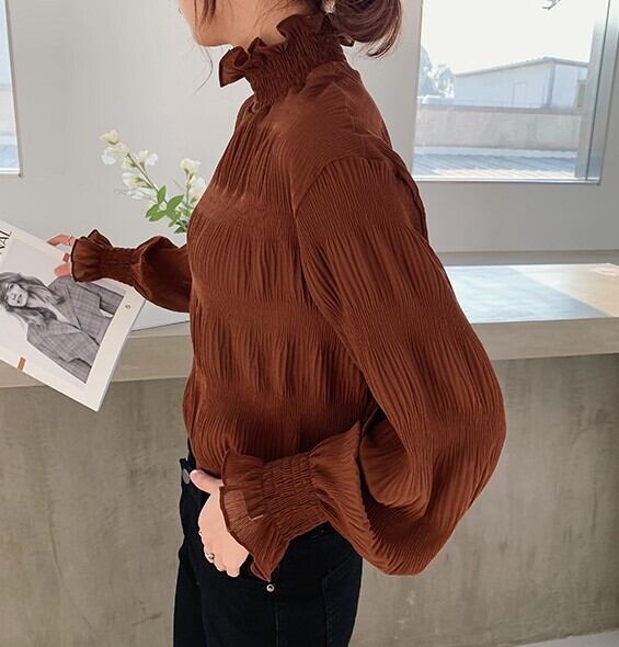トップス ブラウス プリーツ シフォン ティアード フェミニン 大人可愛い きれいめ シンプル 大人 おしゃれ 大人女子 OL 通勤 デート お出かけ 普段使い 韓国系 大きいサイズ ビッグサイズ 白 ホワイト 黒 ブラック 茶色 ブラウン
