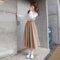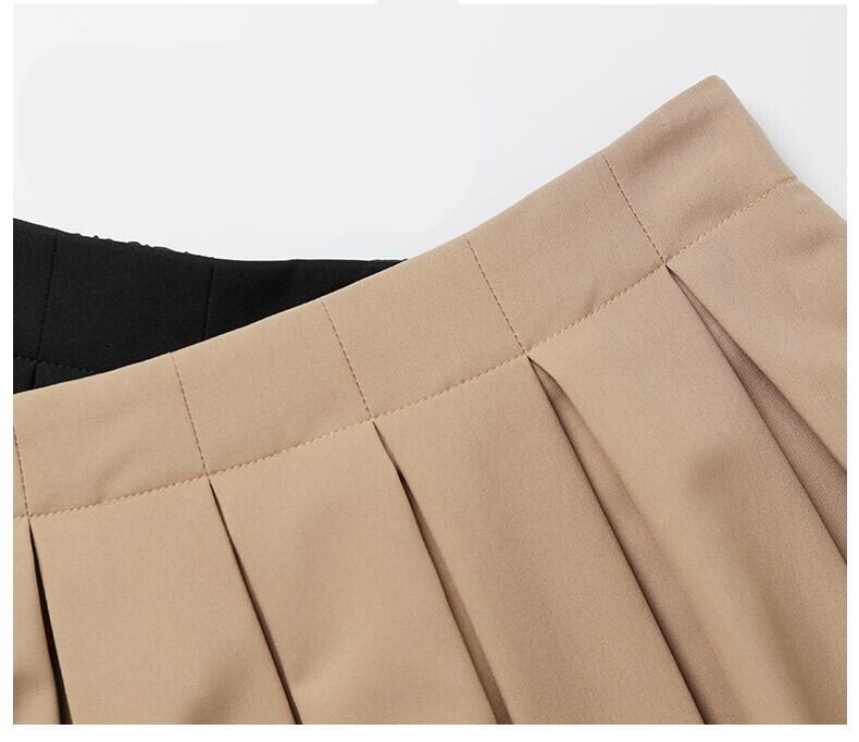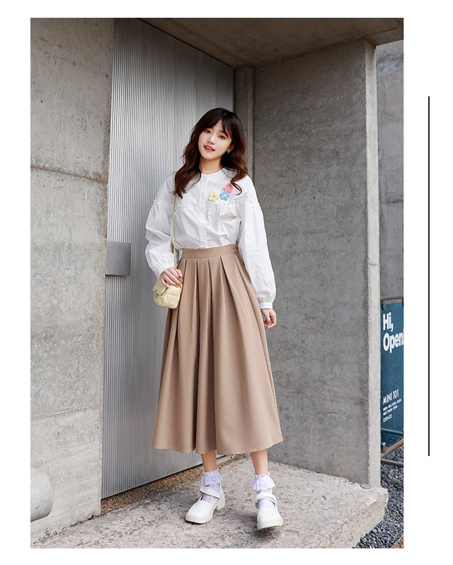 Aラインシルエットが女性らしさを引き立て、プリーツデザインが華やかさを添えます。ミモレ丈7分からミディアム丈まで、さまざまな着こなしに対応しています。