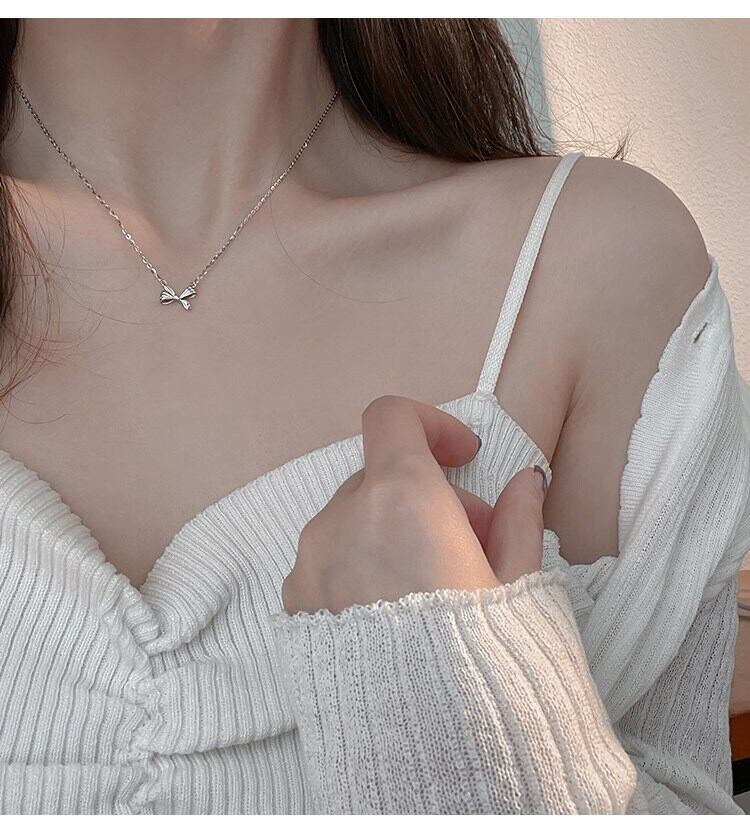 レディース2022新しいセーター鎖骨チェーンシンプルな小さなリボンネックレスデザイン、ほんのりと上品な甘さを装いにアピール。周囲とのおしゃれに差をつけたい時にお勧めです。