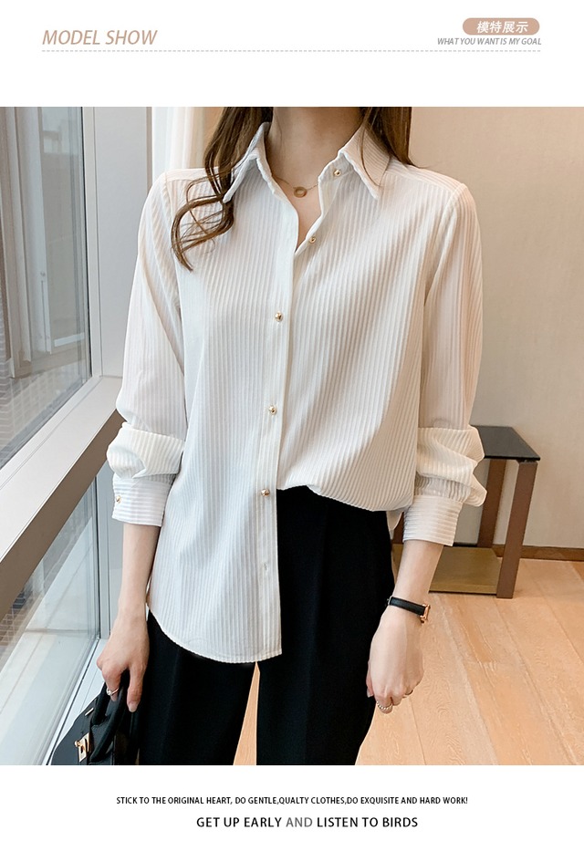 トップス シャツ ブラウス 袖あり 長袖 Vネック 襟付き ストレート かわいい 大人可愛い 大人 上品 おしゃれ 大人可愛い 大人女子 ラブリー キュート ストライプ 春 夏 秋 冬 オールシーズン 10代 20代 レディース 女性用 オフィス ビジネス OL 通勤 学生 デート お出かけ モテ サイズ S M L XL 2XL 白 ホワイト 灰色 グレー