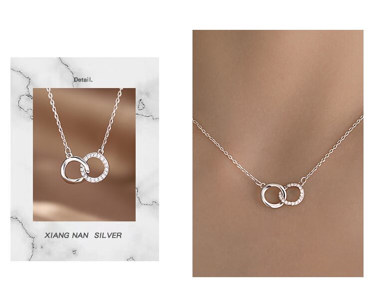925スターリング シルバー ダブルリングネックレス シンプル 大人 上品 おしゃれ お洒落 かっこいい レトロ クール セクシー 20代 30代 40代 50代 レディース お出かけ 女子会 休日 パーティー イベント 旅行 お買い物 普段使い ファッション スタイル 格上げ 新作 トレンド 流行 オールシーズン シルバー