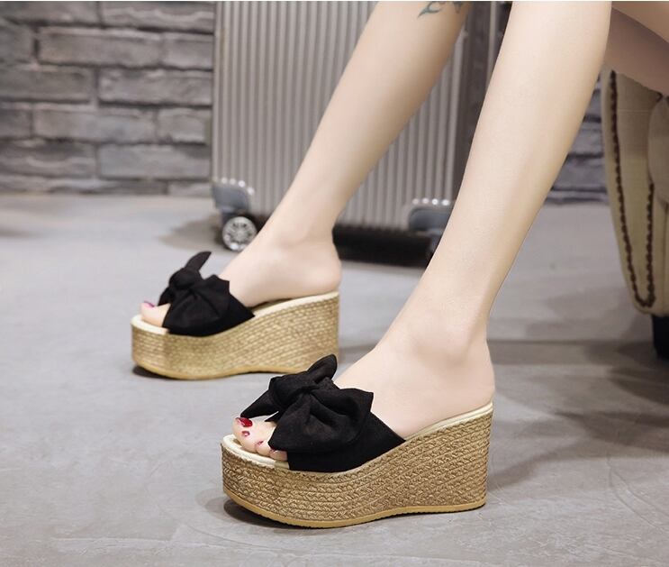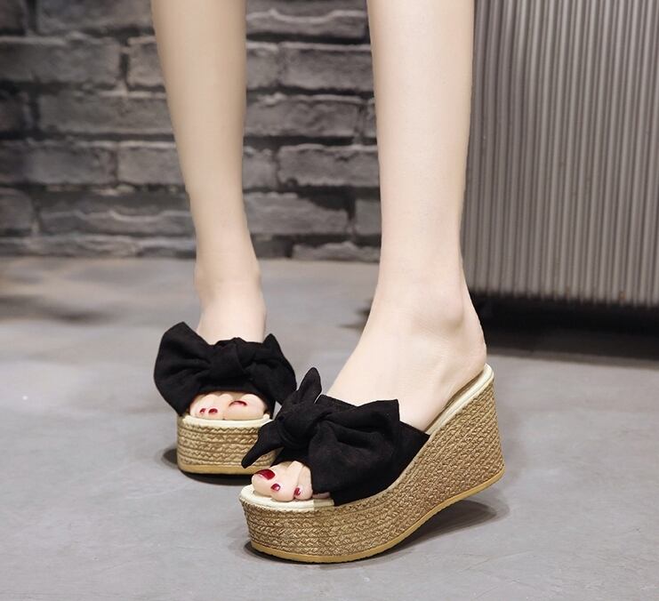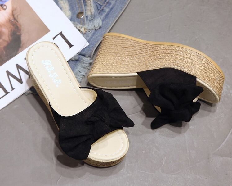ウェッジソールサンダル 厚底デザイン大きめリボンでかわいいサンダル