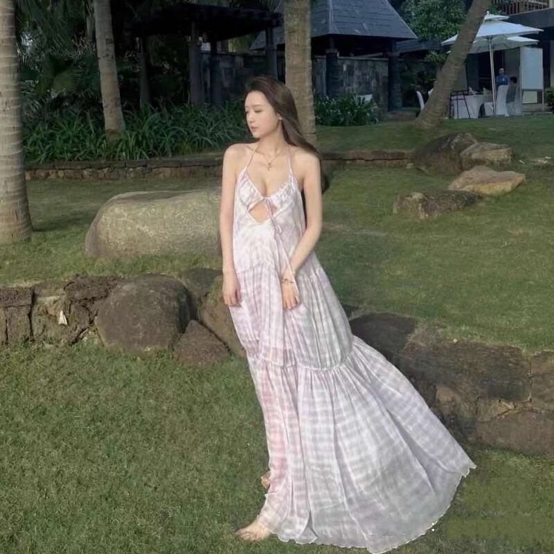 大きく背中の開いたセクシーワンピース シンプル ワンピース ワンピドレス ロング丈 ノースリーブ シフォン かわいい 夏 20代 30代 リゾート 旅行 海 プール 楽ちん ゆったり パープル