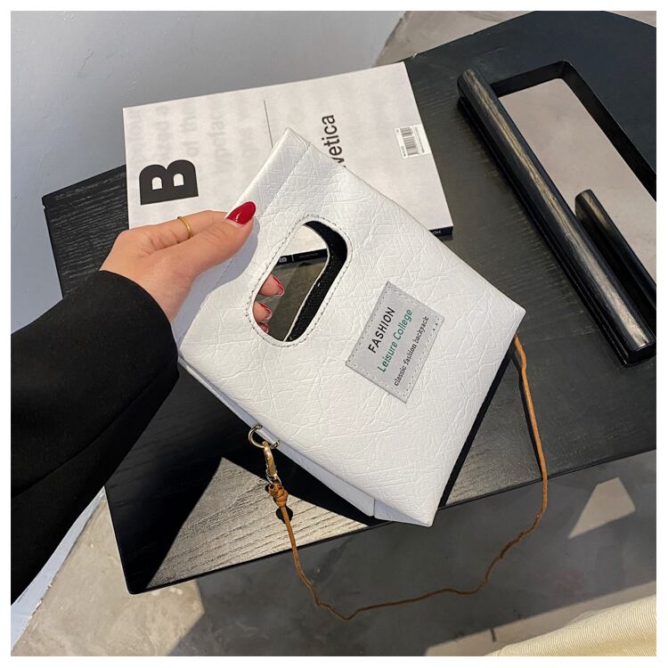 さらに、このミニバッグの特徴は、サイドにある口の部分。携帯電話や小さな財布など、よく使うアイテムをこの口から出し入れすれば、手軽に取り出すことができます。通勤、通学、お買い物など、ちょっとしたお出かけにも便利な一品です。