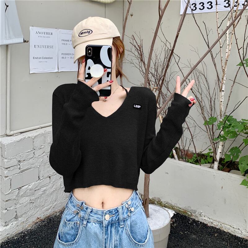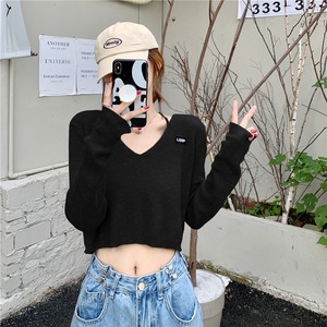 トップス ハイウエスト プルオーバー 長袖 Vネック ホルターネック ロゴ ショート丈 襟なし かわいい シンプル カジュアル おしゃれ かっこいい スポーティー ラブリー キュート ガーリー クール セクシー 存在感 無地 春 秋 冬 2022 10代 20代 レディース 女性用 デート お出かけ 女子会 お泊まり リゾート 旅行 海 普段使い お揃い 双子 韓国 楽ちん L XL 2XL 3XL 4XL 黒 ブラック 紫 パープル 灰色 グレー アプリコット