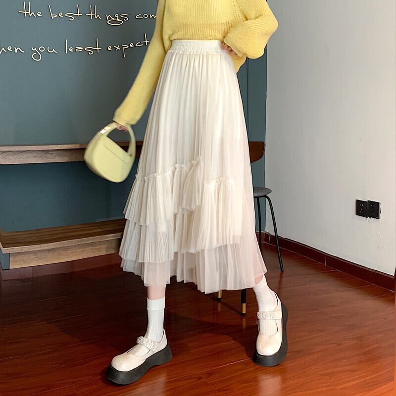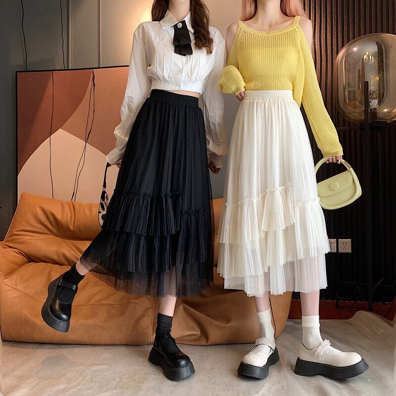 スカート ボトムス 膝下 ミモレ ミモレ丈 チュール かわいい 大人可愛い きれいめ 大人 上品 おしゃれ お洒落 レトロ 大人可愛い 大人女子 春 夏 10代 20代 30代 レディース OL 学生 デート お出かけ 女子会 休日 着回し 普段使い 韓国 韓国系 オルチャン モテ 色展開 ブラックホワイト