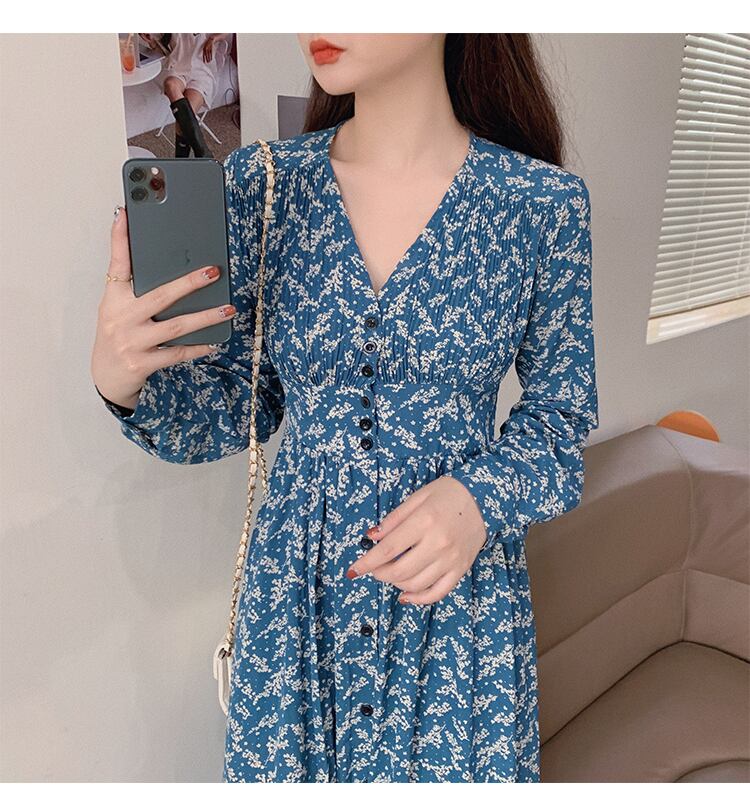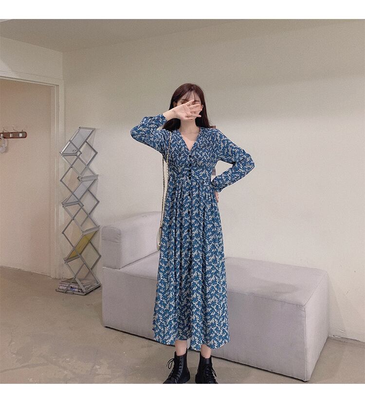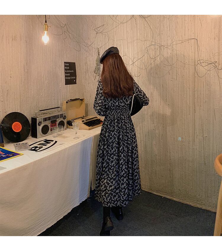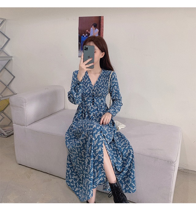 ワンピース 膝下 ミモレ 袖あり 長袖 クルーネック フレア シフォン かわいい 大人可愛い きれいめ 大人 上品 おしゃれ お洒落 大人可愛い 大人女子 セクシー エレガント 春 夏 10代 20代 30代 レディース OL 学生 デート お出かけ 女子会 休日 着回し 普段使い 韓国 韓国系 オルチャン モテ 色展開