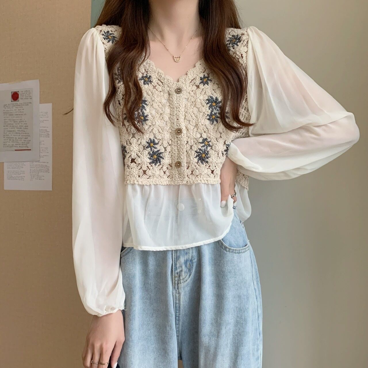 ニットベストを着ているようなドッキングブラウスです