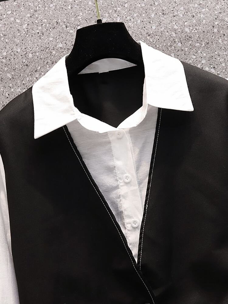 トップス シャツ ベスト 袖あり 長袖 襟付き かわいい シンプル カジュアル 大人 おしゃれ お洒落 かっこいい ラフ メンズライク 無地 春 夏 秋 冬 10代 20代 30代 レディース OL 学生 デート お出かけ 女子会 お泊まり 休日 着回し モテ サイズ L XL 2XL 3XL 4XL 黒 ブラック