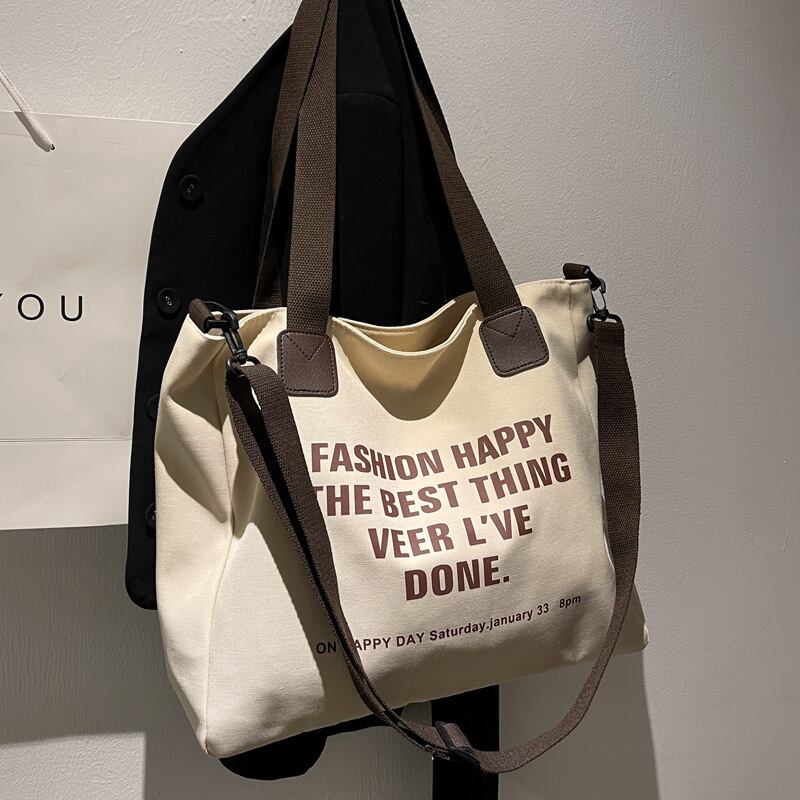 2wayキャンバスメッセンジャーバッグ バッグ レディースバッグ ショルダーバッグ トートバッグ 斜めがけバッグ 肩がけバック 大容量 便利 斜めがけ 肩掛け ショルダー 使いやすい 柔らかい ポケット ファスナー付き 帆布 キャンバス 大人可愛い シンプル カジュアル ラフ プリント ロゴ 通勤 学生 通学 休日 レジャー デイリー 普段使い ファッション オールシーズン シーズンレス 大きめ 大きい ブラック カーキ ホワイト