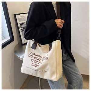 大容量で通勤や通学にもぴったりな、ロゴ入りのおしゃれなキャンバスバッグです。