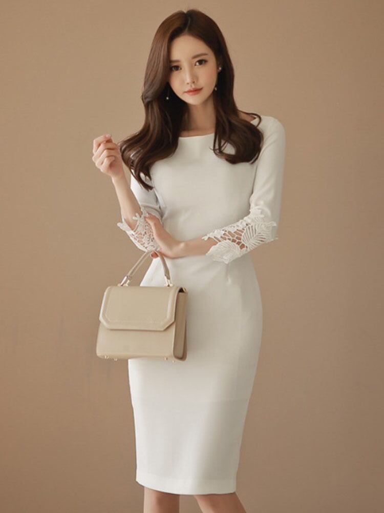 ワンピドレス ひざ丈 ラウンドネック ジッパー ワンピース 膝丈 袖あり 7分袖 七分袖 長袖 襟なし スリム タイト 刺繍 大人可愛い きれいめ シンプル 上品 おしゃれ お洒落 かっこいい レトロ 大人女子 クール モード系 セクシー エレガント モダン 主役級 存在感 フォーマル 無地 秋 冬 入学式 入園式 卒業式 卒園式 20代 30代 40代 50代 60代 レディース デート お出かけ パーティー 美脚 脚長 S M L XL 白 ホワイト 黒 ブラック 赤 レッド