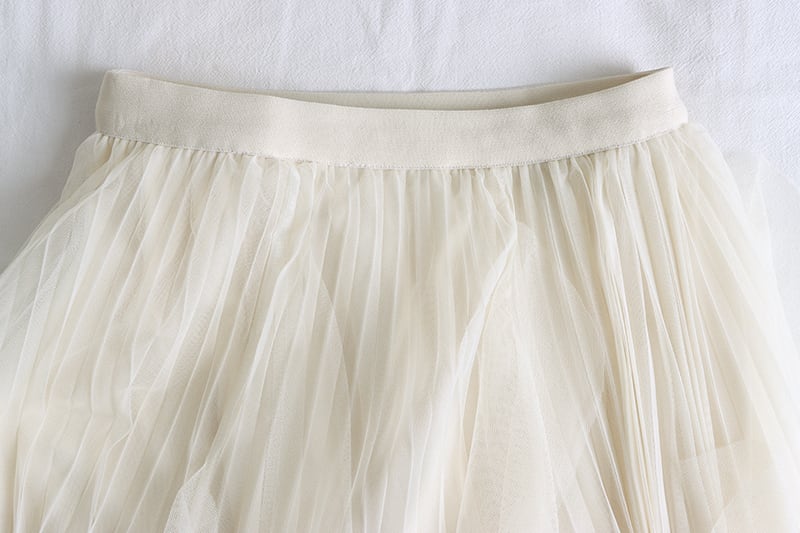 透け感があり、風に吹かれるとふわっと揺れるチュール素材。繊細なデザインでありながら、コーディネートによってカジュアルにもおしゃれに決まります。