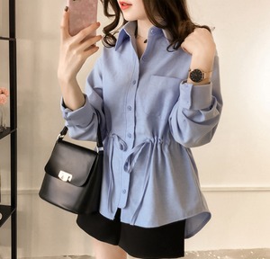 トップス シャツ ブラウス 袖あり 長袖 襟付き ウエストマーク かわいい 大人可愛い 大人 上品 おしゃれ お洒落 大人可愛い 大人女子 セクシー エレガント 無地 秋 冬 20代 30代 レディース OL 学生 デート 女子会 お泊まり 休日 旅行 韓国 韓国系 オルチャン モテ サイズ S M L XL 2XL 3XL 4XL 色展開 ブルー グレー