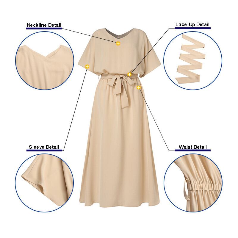 ワンピース マキシ丈 袖あり Vネック ワイド Aライン ウエストリボン シンプル カジュアル おしゃれ かっこいい こなれ感 ラフ ルーズ 抜け感 無地 夏 秋 レディース 普段使い 楽ちん 体系カバー S M L XL 2XL 3XL 4XL 大きめ ゆったり ゆる 黒 ブラック 緑 グリーン 灰色 グレー ベージュ