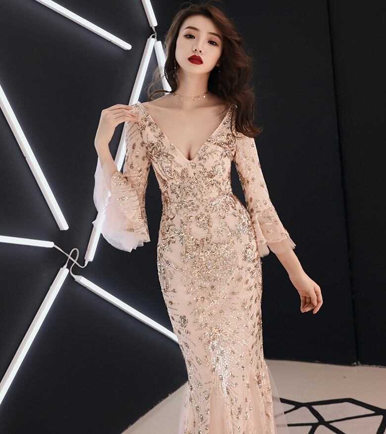 キラキラと輝くゴージャスなマーメイドロングドレス