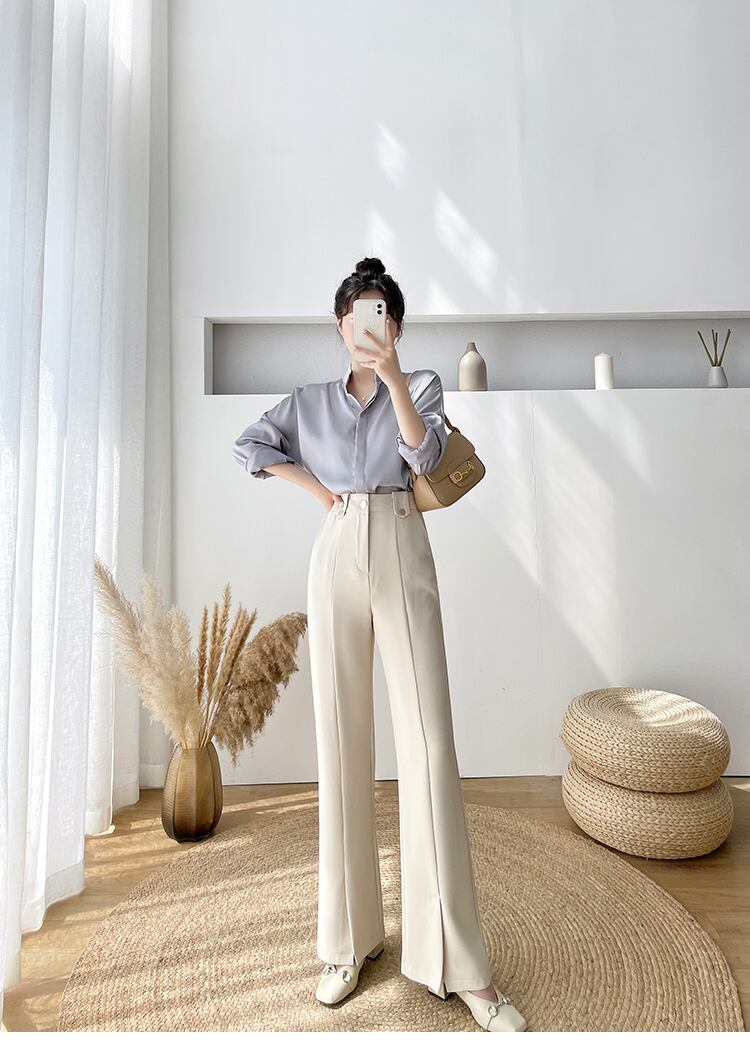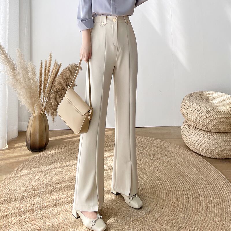ひらっと揺れるスリットの入った裾がポイントのキレイ目パンツです。