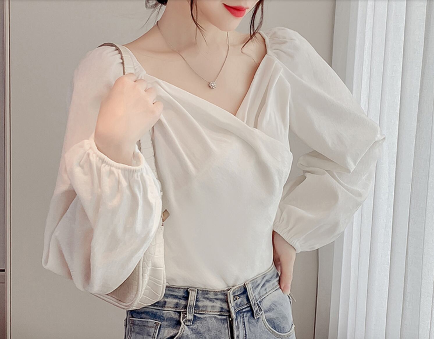 ふんわりしたパフスリーブが可愛いブラウスです。