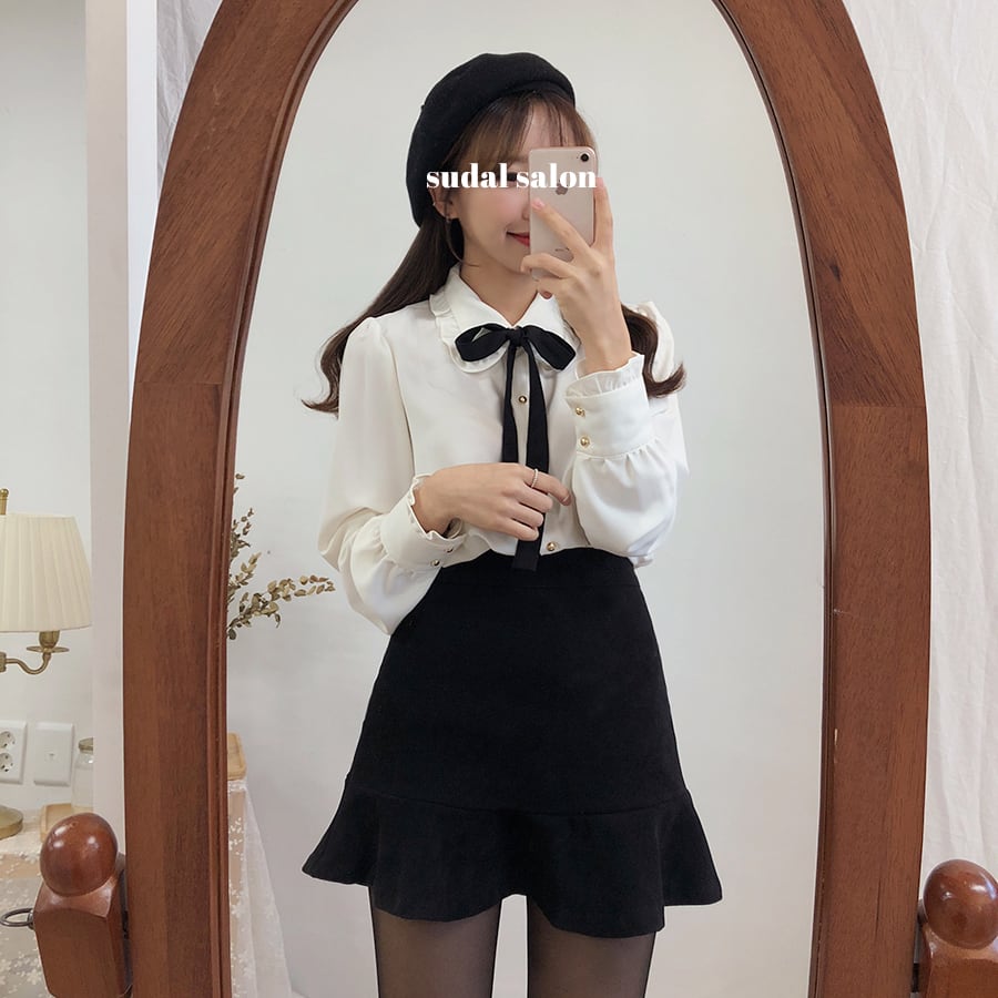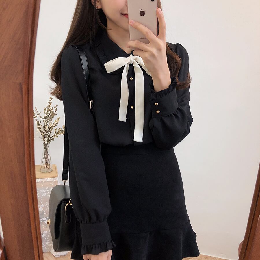 トップス ブラウス 袖あり 長袖 襟付き ペプラム フリル リボン かわいい 大人可愛い シンプル カジュアル 大人 おしゃれ お洒落 大人可愛い 大人女子 キュート ガーリー 秋 冬 10代 20代 レディース OL 学生 デート お出かけ 公園デビュー 女子会 お泊まり 休日 着回し 普段使い 韓国 韓国系 オルチャン モテ サイズ S M L XL 色展開 白 ホワイト 黒 ブラック 赤 レッド