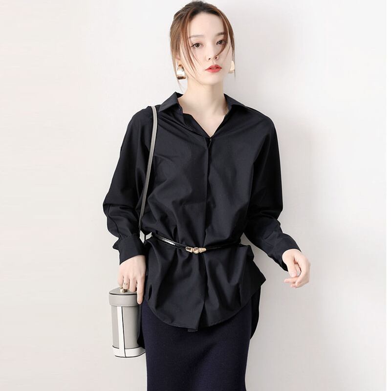 トップス ブラウス 白シャツ 黒シャツ 袖あり 長袖 襟付き 大人可愛い きれいめ シンプル カジュアル 大人 上品 おしゃれ お洒落 かっこいい レトロ 大人女子 こなれ感 個性的 クール モード系 エレガント 主役級 存在感 抜け感 無地 春 夏 秋 冬 オールシーズン レディース 女性用 通勤 デート お出かけ リゾート 旅行 普段使い 韓国 体系カバー S M L XL 2XL 白 ホワイト 黒 ブラック