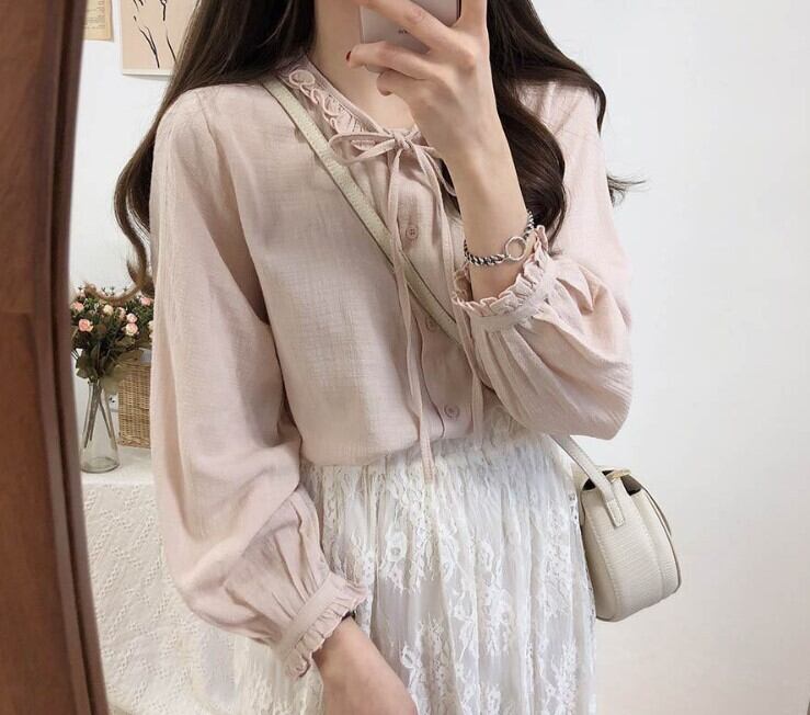 シャツ ブラウス 袖あり 長袖 ラウンドネック 前開き 綿 ウール かわいい 大人可愛い きれいめ シンプル カジュアル 大人 おしゃれ レトロ 大人可愛い 大人女子 こなれ感 ラブリー キュート ガーリー とろみ感 無地 オールシーズン シーズンレス レディース ビジネス OL 通勤 学生 通学 デート お出かけ 女子会 休日 イベント リゾート 旅行 ガーデン レストラン 普段使い 韓国 ファッション モテ 脚長 S M L XL 白 ホワイト ピンク